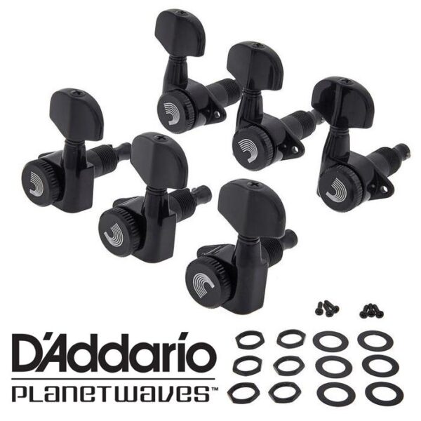 D’Addario© PWAT-332L ลูกบิดกีตาร์โปร่ง สีดำล้วน มีกลไกตัดสายส่วนเกิน + แถมฟรีน็อตและวงแหวนรอง (Auto-trim Locking Tuning Machine Heads)